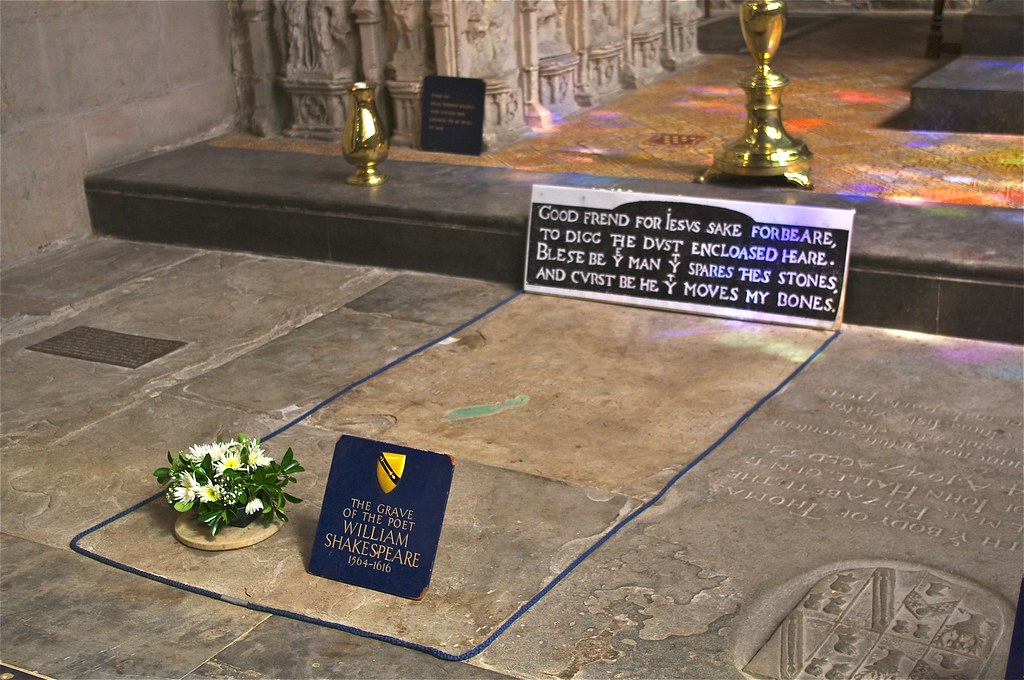 在位于圣三一教堂的莎士比亚棺椁旁边,有他自己写的诅咒盗墓者的文字,但是讽刺的是,他的头颅还是被偷了,至今下落不明。