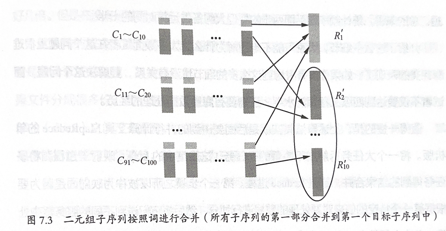 • 使用分桶离散技术优化归并过程(按二元组首个单词分桶)