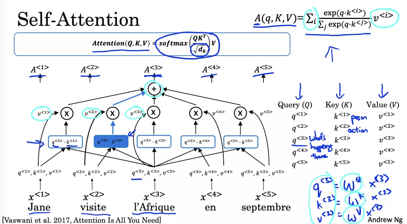 对于句子中的单个词汇,我们用三个值来表示 Q,K,V。这三个值可以通过线性变换计算。